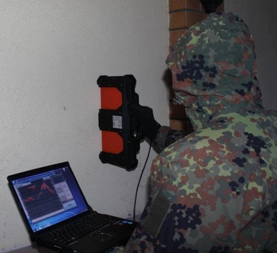 該裝置的操作原理是操作者將天線模塊導向墻壁。 然后即可在計算機屏幕上觀察當物體在墻后移動時反射信號的雷達圖的變化。