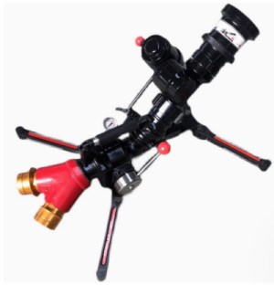 該炮可以手動控制與自擺轉換快速切換,射程遠,配有流量自動調節炮頭,當流量壓力較小時,仍能保持一定的噴射距離。體積小,移動方便,操作簡便,機動性強,非常適用于各類大中型石油化工生產基地、各類易燃易爆、有毒有害火災、各種大中型建筑的火場搶險救災。炮體采用輕質鋁合金材質,表面硬質陽極氧化后噴漆處理;炮腳鍛造鋁合金材質黑色氧化處理,4只支撐腳可折疊便于存放,拉開腳撐可定位作業,且腳撐拉開、折疊都有彈簧卡扣定位.防滑鎢鋼釘,腳撐上都裝有防滑鎢鋼釘,防止水炮在作業過程中滑動,配有直桿式開關,可快速開啟或關閉水流;
