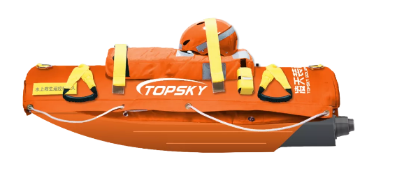 水上救生遙控機器人可以從船上、岸上、或者飛機上投擲,側翻后可以自動翻轉到正面。它由類似于水上摩托的推進器驅動,速度是救生員的12倍以上,可以在波浪之中穩定轉彎,抗風浪行進??梢酝侠壬蛳鹌ねШ透∷K,兩臺機器人可以聯機并排組合一起救援。水上救生遙控機器人可同時救起4名落水者,落水者可以抓住它兩邊的繩子,或是趴在它的頂端等待救援。
