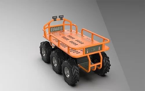 救援伴隨運輸機器人是一個6x6驅動,采用6臺直驅輪轂電機,電子差速轉向的無人平臺。可以穿越狹窄的小路,陡峭的山坡和茂密的叢林。僅僅使用內部鋰電儲能,這輛車可以行駛50多公里。該車的鋰電驅動動力系統提供無聲操作能力。該系統的模塊化架構和與機器人操作系統協議的完全兼容性使得車輛易于升級,使用各種各樣的模塊化任務有效載荷。每個表面的硬點都允許重載荷和裝甲包安全地安裝在車輛的框架上。可以實現自動跟隨車輛或人員行走、最大運動速度可達≥15km/h,自動跟隨目標行進,具備主動避障功能,可攜帶救援設備及物資進行運輸,突破我國大多數道路條件下的“最后一公里”,可充當救援擔架,運輸傷患撤離危險區域,可配備增程式發電機提高超長續航,網絡化傳輸機器人信息參數后臺話傳輸管理、GPS/北斗雙模定位等特點。