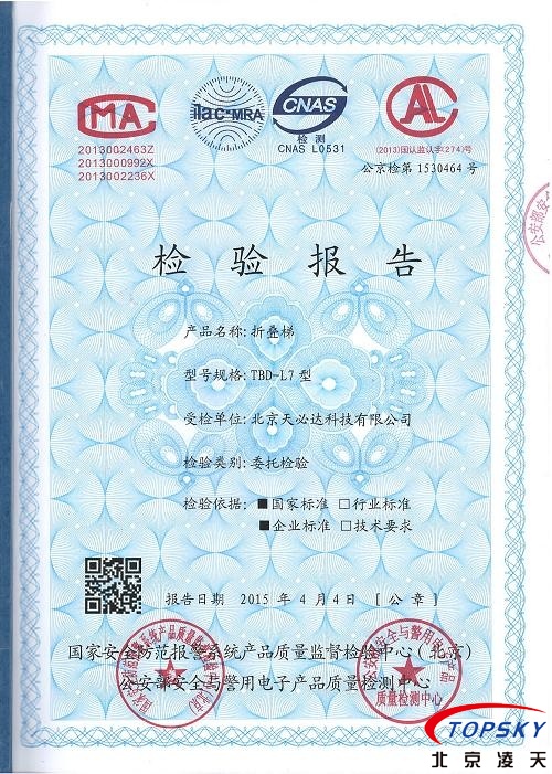 本產(chǎn)品通過公安部安全與電子產(chǎn)品檢測檢驗(yàn)中心檢測,檢測報(bào)告編號:公京檢第1530464號。