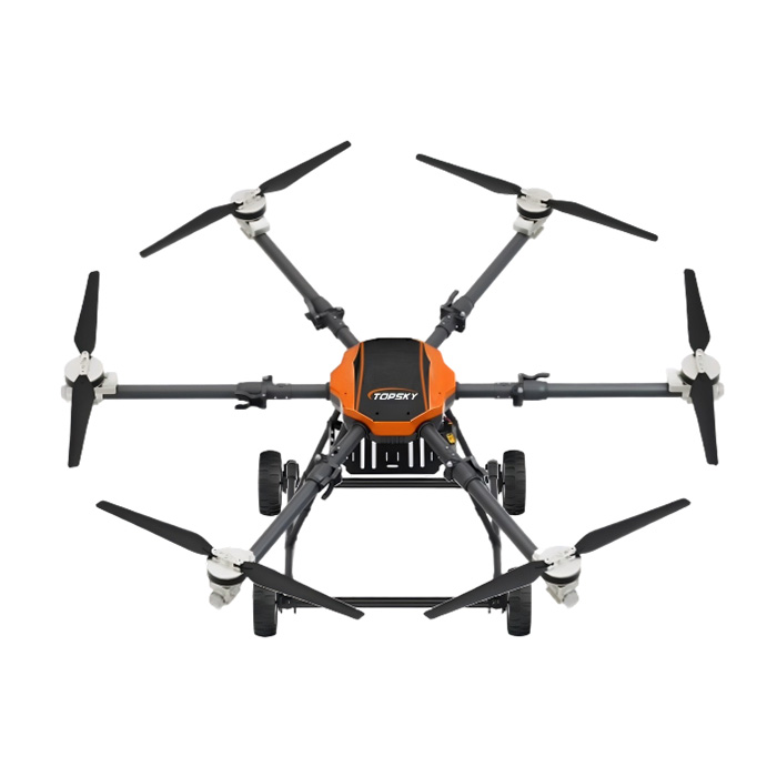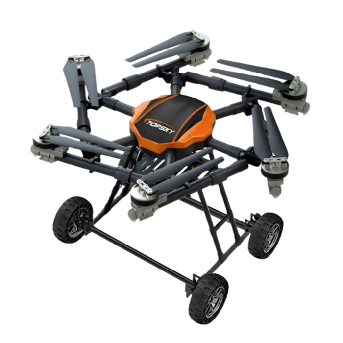 陸空兩棲核生化環境偵檢無人機采用六軸六槳設計,載重大,續航長,并且機臂可折疊、標準化負載接口、集成航電系統、雷達避障傳感器、RTK與北斗雙冗余定位系統。搭載長距離實時通訊鏈路,實時傳輸現場環境數據及無人機飛行數據。配備智能控制系統,可滿足多種場景和多種方式的作業需求。裝配陸行輪,可實現空中飛行,地面行走雙模式切換,可在不同場景下切換合適的作業模式。無人機搭載有輻射探測系統、化學氣體監測系統、生物氣溶膠監測系統,可在核生化環境下的進行偵查檢測。