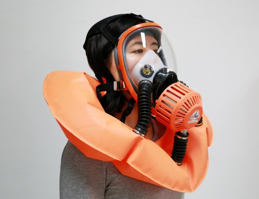 產品采用了航天空氣再生技術、空氣可控緩釋技術、一體化熱控技術,實現了小型化、便攜式、內循環空氣再生,可長時間提供安全、舒適的呼吸防護,核心指標優于國家標準及其他類產品約 50% 以上。該產品有效解決了現有過濾式逃生面罩“安全性能極差”、消防呼吸器“使用復雜”、“效費比低”等痛點問題,具備消防火場救援、公眾佩戴逃生自救等多重應急救援功效。