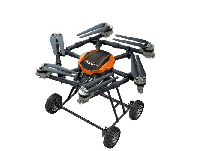 本陸空兩棲無人機平臺為北京凌天智能裝備集團研發的集多旋翼無人機與陸地行駛系統于一體的陸空兩棲無人機平臺(多用途偵檢無人機),采用六旋翼機身設計,配備可快拆的陸地行駛系統,能夠空中飛行與地面行駛兩種模式間自主或受控切換,既能空中飛行,又可陸地行駛。載重大,續航長,并且機體折疊標準化負載接口、集成航電系統、核心傳感器雙冗余備份系統。搭載長距離實時通訊鏈路,實時傳輸現場環境數據及無人機飛行數據。配備智能控制系統,可滿足多種場景和多種方式的作業需求。本陸空兩棲無人機平臺可適應復雜多變的環境與任務需求,極大地擴展了傳統無人機的作業邊界。可搭載多種載荷,如:四光吊艙、氣體檢測儀、喊話器,滿足環境偵查、應急教援、安全疏導、氣體檢測等不同場景的行業應用。