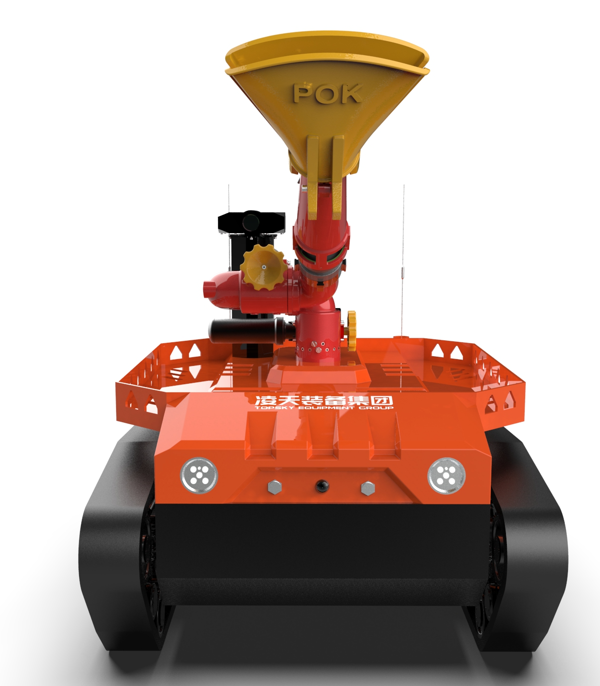 機器人采用無線遙控設計,遙控器與監視器一體/分離,可實時的顯示電池、內部的各種信息,機器人狀態、現場溫濕度、有毒有害氣體濃度報警信息等控制機器人前進、后退、轉向等運動。具備遠程偵察能力,機身搭建升降云臺、高清攝像頭、熱成像攝像頭、氣體傳感器三類環境感知設備和云臺控制設備,也可聯動聲光報警模塊提醒消防人員或群眾,有效避免危險。在通過遠程偵察手段有效獲取現場火源信息后,機器人配備的大功率電機可以幫助消防人員將消防水袋拖拽至危險火源區域進行滅火,并能搭載各類國內、外的多種消防水泡,并能夠遠程控制發射水或泡沫。基于所配備的拾音模塊和揚聲器模塊,拾取現場環境聲音,即使消防官兵未靠近消防現場也能夠聽到搜救現場的群眾呼救聲,并通過揚聲器模塊與群眾進行現場對話。