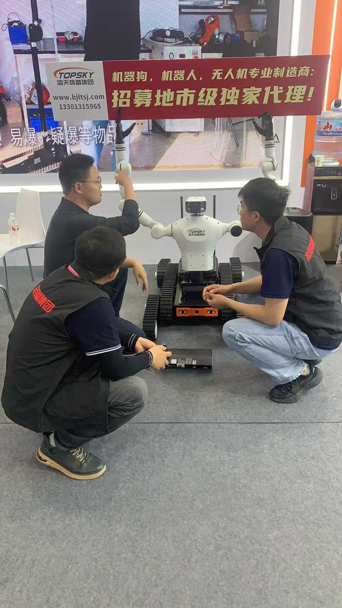 雙臂排爆機器人主要是用來處理爆炸物相關(guān)工作的排爆式機器人,也可用于偵察人難以達(dá)到的地形的一種機器人。同時該裝備采用擬人機械臂結(jié)構(gòu)兼容人體姿態(tài)隨動,手持控制,便攜控制箱等多種人機交互操控方式,可實現(xiàn)雙臂協(xié)同靈巧操作、雙向語音通話、高清立體視頻及回傳反饋等功能。履帶式底盤,極大提升越障和爬坡能力,可適應(yīng)沙地、瓦礫、草地等多重復(fù)雜地形。同時新增的腰部自由度擴大了機器人的工作空間,更加方便機器人處理地面和高處任務(wù)。能夠在非視距條件下,遠(yuǎn)程操控機器人打開拉鏈包裹、消防栓、垃圾桶等可疑載體,檢查翻找危險品及自制炸彈;能夠攜帶并使用柔性防爆罐,在非視距條件下,遠(yuǎn)程操控機器人完成從爆炸物抓取、轉(zhuǎn)移、放置于排爆罐內(nèi)、關(guān)閉排爆罐的全流程作業(yè)。
