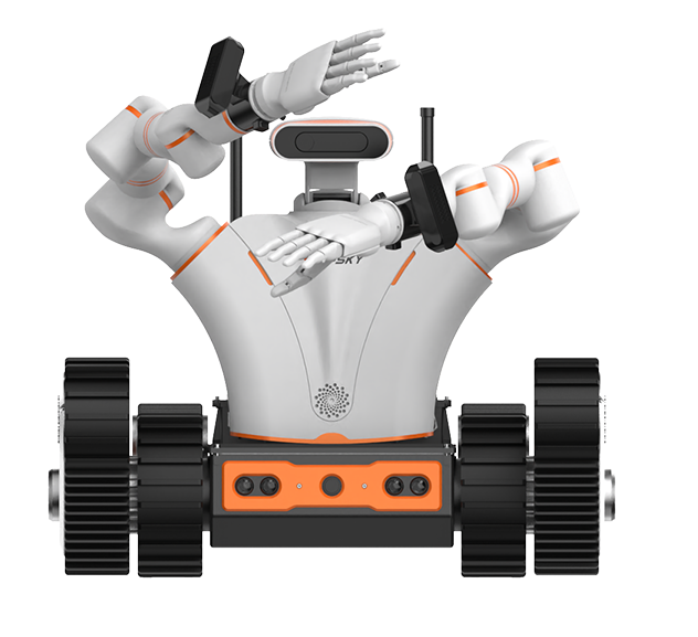 2、系統組成:主要由三大部分組成:遙控操作裝置、底盤、具身雙機械臂。