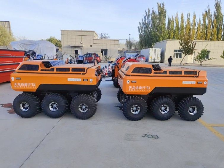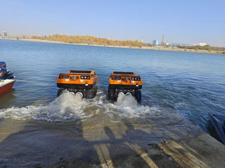 采用6×6輪式底盤,液壓驅動,裝有真空輪胎,另加配水下推進器,增加水中行進效率,水陸兩棲,可全地形行駛;