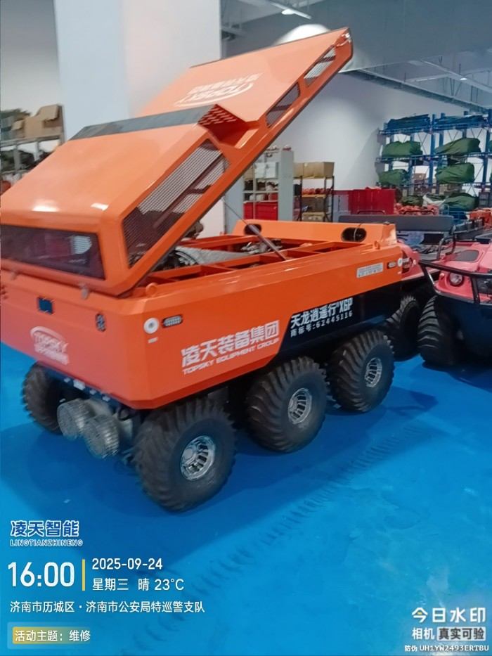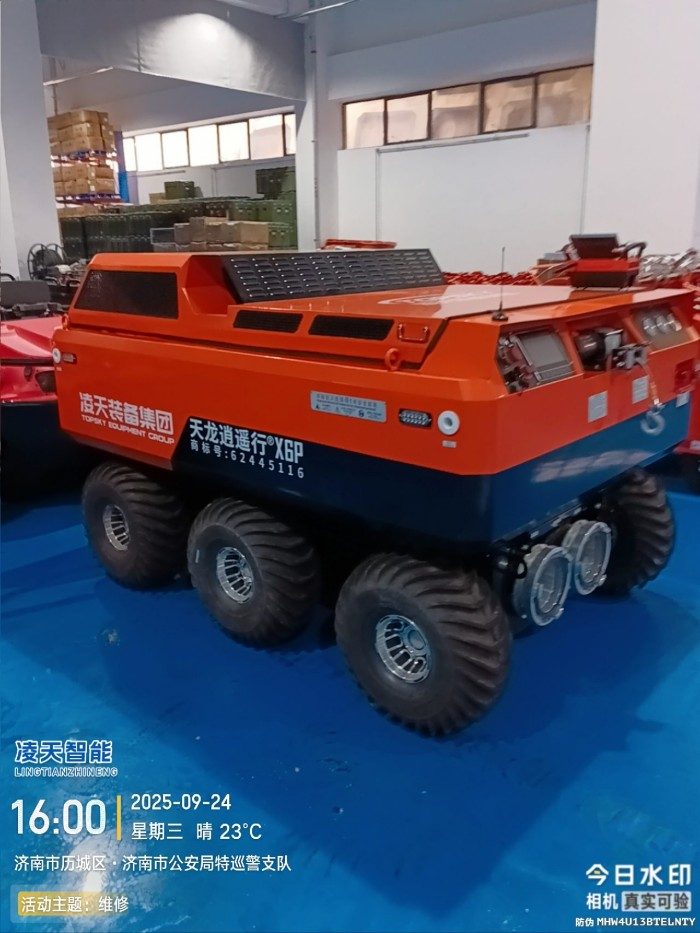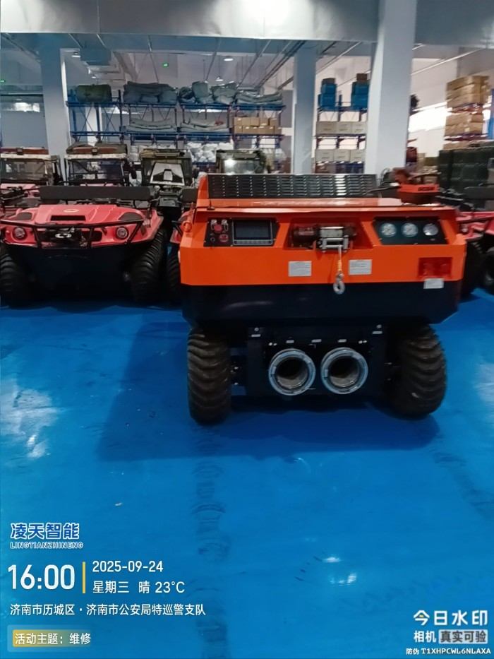 當(dāng)城市發(fā)生洪澇災(zāi)害,導(dǎo)致地下車庫(kù)、地鐵、隧道等蓄水嚴(yán)重時(shí),排澇破拆一體化機(jī)器人可實(shí)現(xiàn)快速排洪救援。本產(chǎn)品具備排水、音視頻偵察、水中漏電偵察、災(zāi)區(qū)環(huán)境偵察等功能。本產(chǎn)品配套的水帶車可同時(shí)收卷2盤DN200大口徑水帶。機(jī)器人配備的水泵具有排污、放水、檢修等大口徑端口設(shè)置。