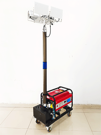 3.可直接使用發電機組供電,也可接通220V市電長時間照明;采用發電機組供電次注滿燃油連續工作時間可達8小時以上。