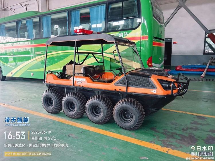 在復雜惡劣的地形條件和自然環境下,水陸兩棲全地形車可以讓搜救隊員和攜帶的救援裝備快速到達救援現場,減少徒步帶來提供消耗,完成最后一公里最好五分鐘緊急救援任務。