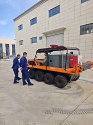 在復雜惡劣的地形條件和自然環境下,水陸兩棲全地形車可以讓搜救隊員和攜帶的救援裝備快速到達救援現場,減少徒步帶來提供消耗,完成最后一公里最好五分鐘緊急救援任務。水陸兩棲全地形車可配備點到絞盤、救援擔架組件、探照燈、警示燈、警報器、脫鉤、破拆工具等裝備, 給救援團隊提供救援保障,更安全的解救傷員和疏散群眾。