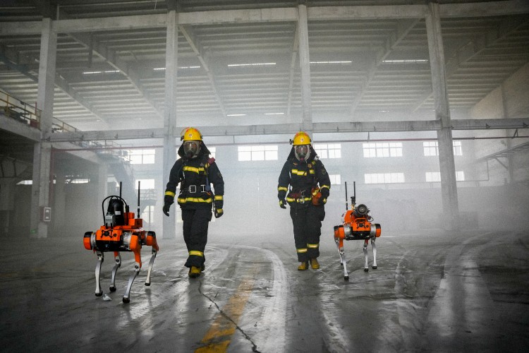 四足機器狗是一種結合仿生學與智能技術的特種裝備,專為復雜、高危的場景設計,工作溫度范圍覆蓋-20℃至55℃,具備IP67級防水防塵性能,可在濃煙、高溫、有毒氣體等極端環境中穩定運行。