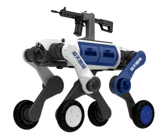 武裝打擊輪足機器狗主要用于軍事和邊防領域,具備攻擊和防御能力,應用場景廣泛。