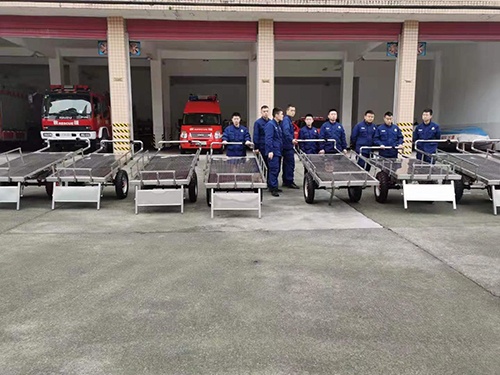 1.組合式電動地震救援運輸車能為消防員在地震、道路救援尤其高速公路交通阻塞或道路崎嶇情況下攜帶裝備、物資,徒步、負重、長途跋涉完成作戰救援任務提供機動、持久、高效運輸力,也適合在大型救援現場往返運送作戰救援裝備、物資、滅火藥劑。